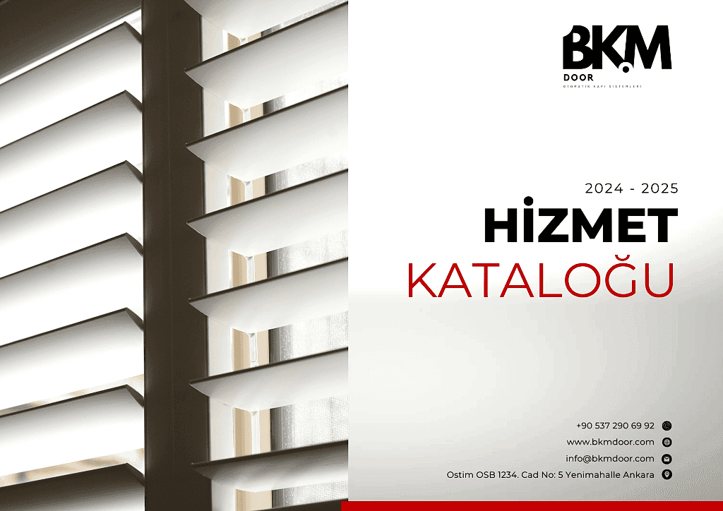 BKM Door Hizmet Kataloğu sayfamızda, güvenlik, otomasyon ve modern yapı çözümleri alanında sunduğumuz geniş ürün yelpazesi hakkında detaylı bilgiye ulaşabilirsiniz. Otomatik kapı sistemlerinden, yükleme çözümlerine kadar tüm ürün ve hizmetlerimizi inceleyerek, projelerinize en uygun çözümleri keşfedin. Profesyonel ekibimizle sağladığımız hizmetler hakkında daha fazla bilgi almak için katalog sayfamıza göz atabilirsiniz.